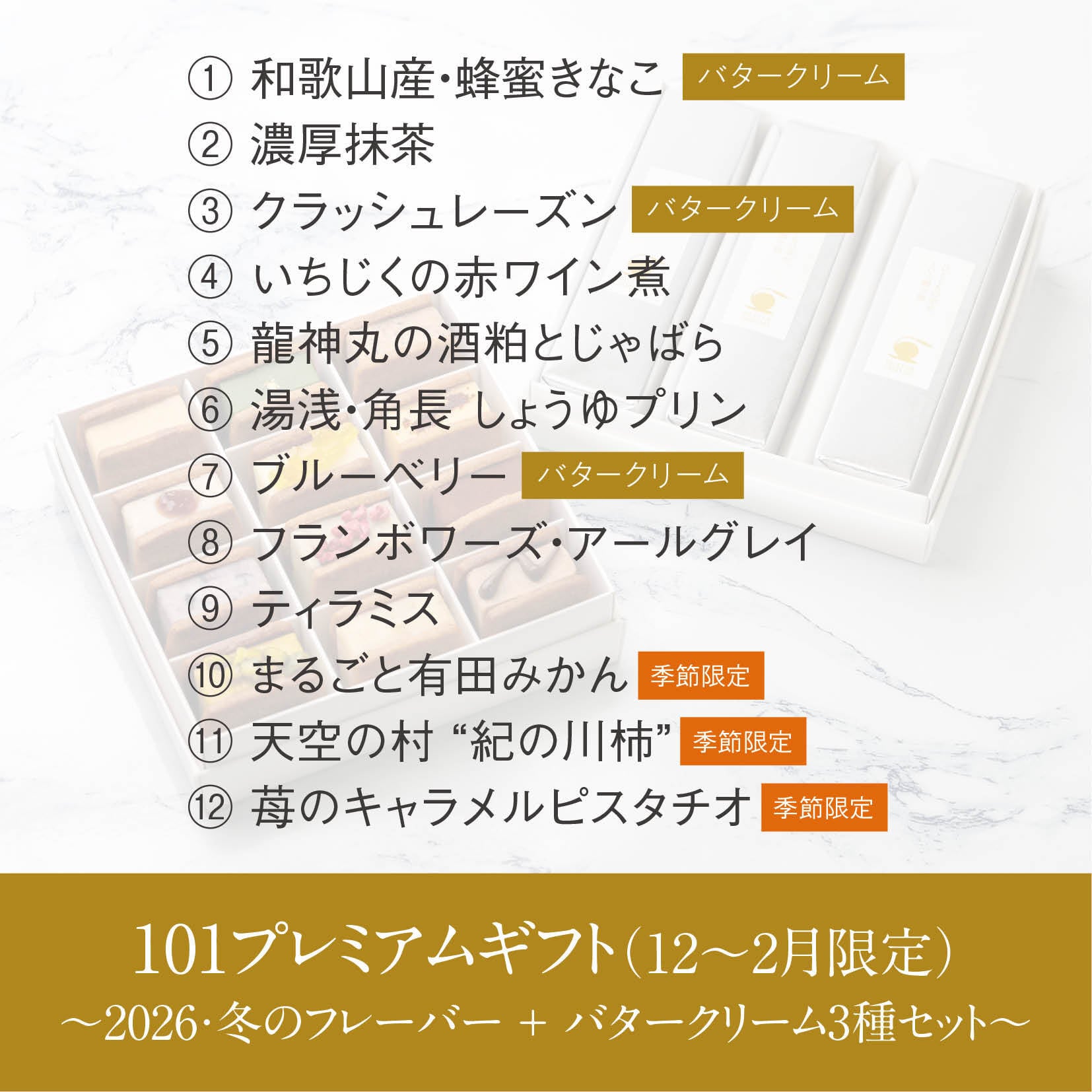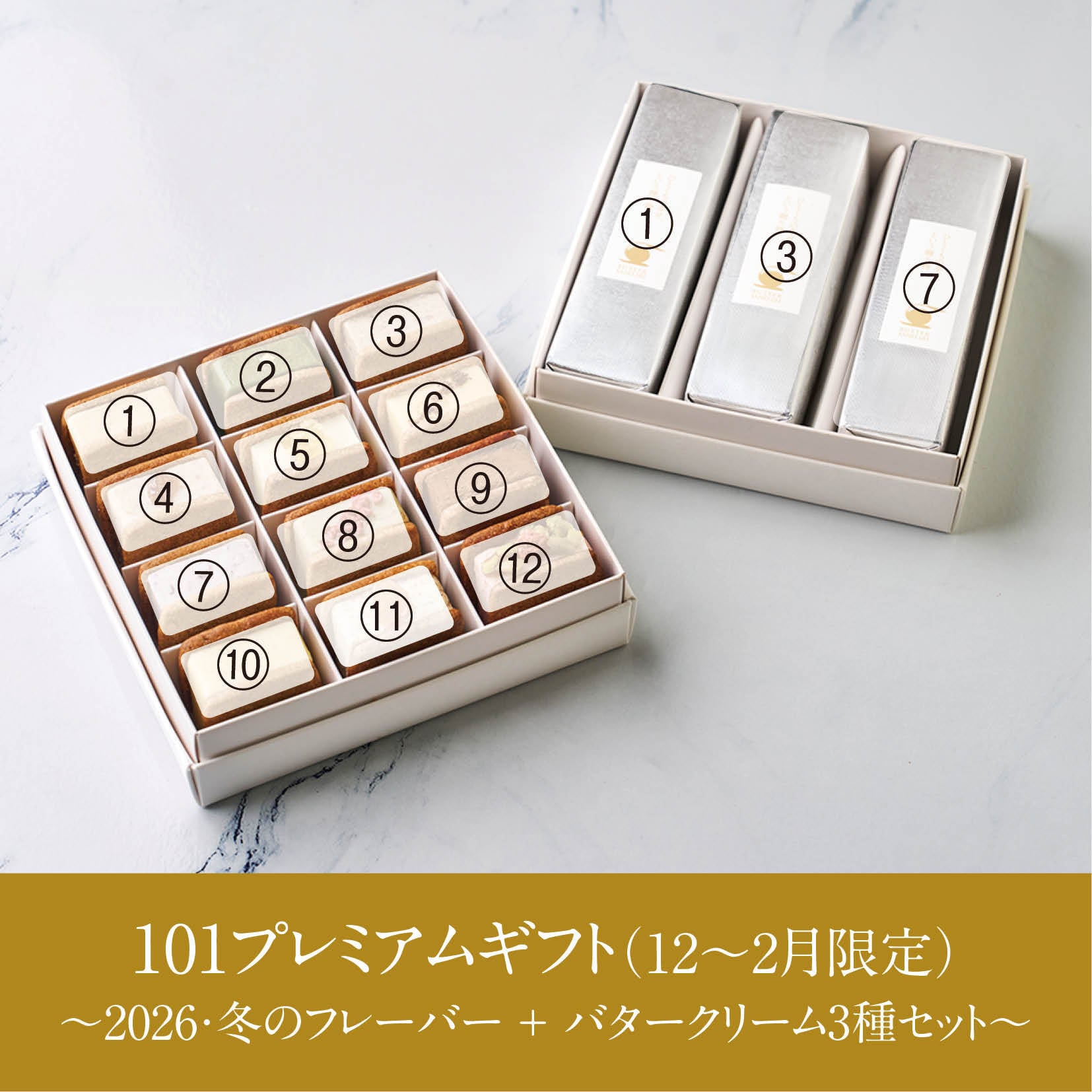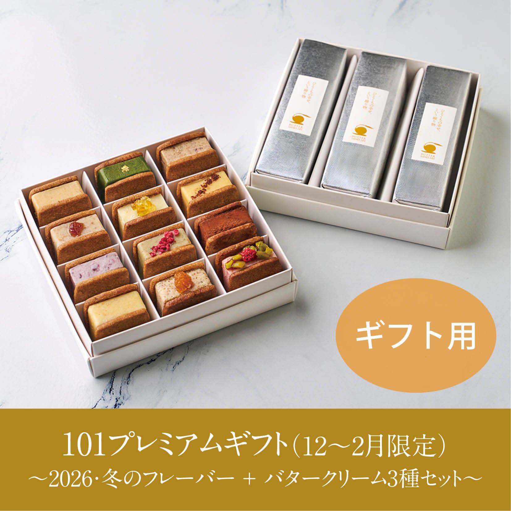 和歌山バターサンド専門店101のバターサンド 全12種類詰め合わせ 1箱とバタークリーム3種類詰め合わせ 1箱のセットです。ギフト用紙袋は1枚となります。