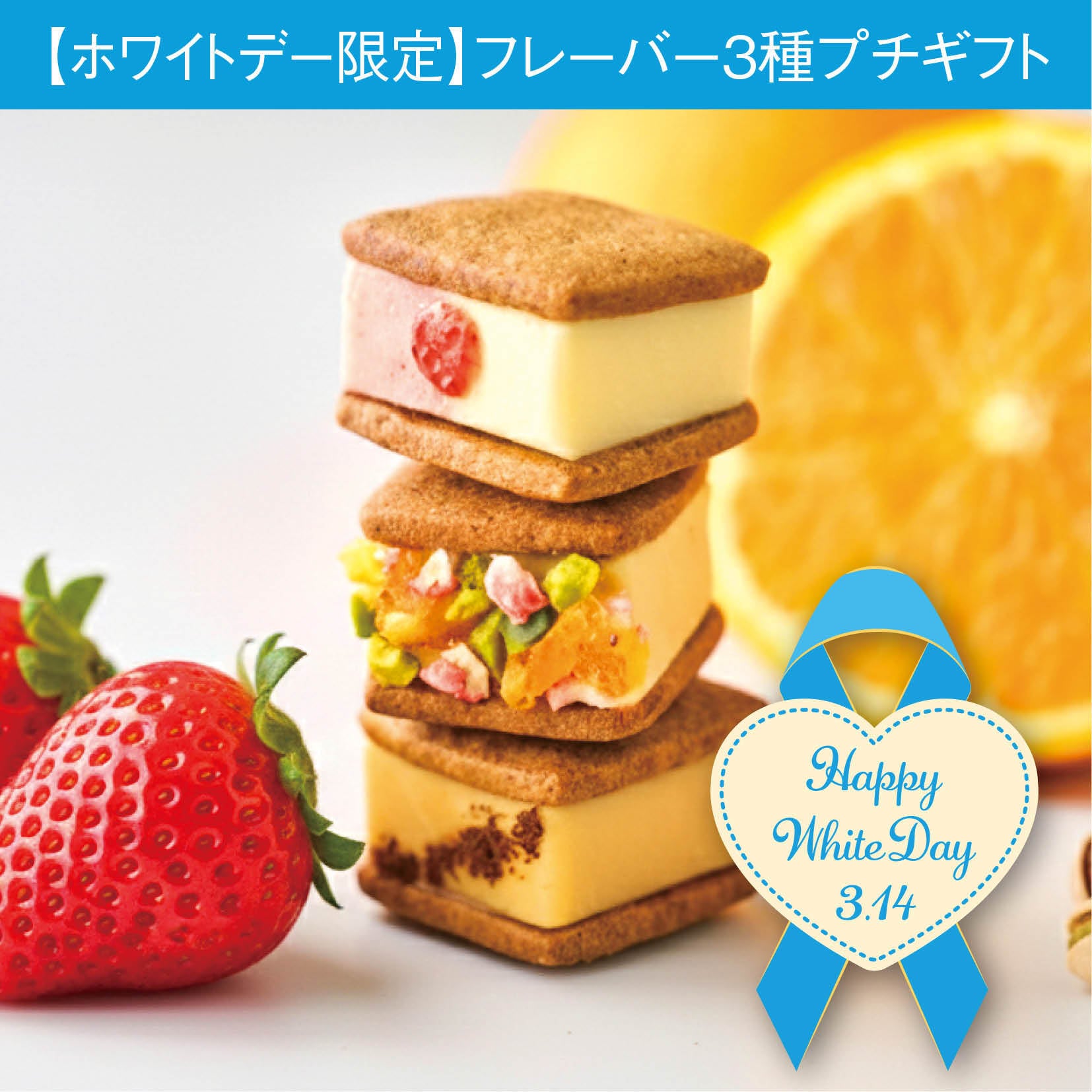 ホワイトデー限定フレーバー フルーツ塩バニラを含む、全3種類詰め合わせたセットです。